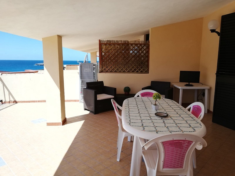 Ogni appartamento dispone , con entrata indipendente di un’ampia cucina completa di vasellame e posateria varia,lavatrice,aria condizionata,TV led, linea wi- fi sia all’interno che all’esterno, servizio con doccia, due camere da letto, in ogni camera un letto matrimoniale, più un singolo per un totale di 6 posti letto, un balcone, più un ampio terrazzo di circa 35 mq, con sdraio e lettini, tavolo e sedie da esterno dove poter pranzare, prendere il sole o godersi spettacolari tramonti davvero suggestivi.